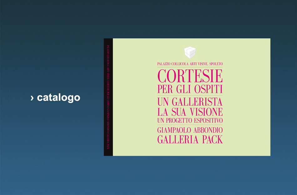 Palazzo Collicola Arti Visive presenta la seconda tappa espositiva del progetto intitolato CORTESIE PER GLI OSPITI a cura di Gianluca Marziani. Si tratta di un nuovo ciclo dedicato al mondo dei galleristi privati con le loro storie, le loro scelte, le loro passioni e intuizioni… un viaggio narrativo e coinvolgente, immaginato come un’avventura culturale, costruito come una retrospettiva interiore.