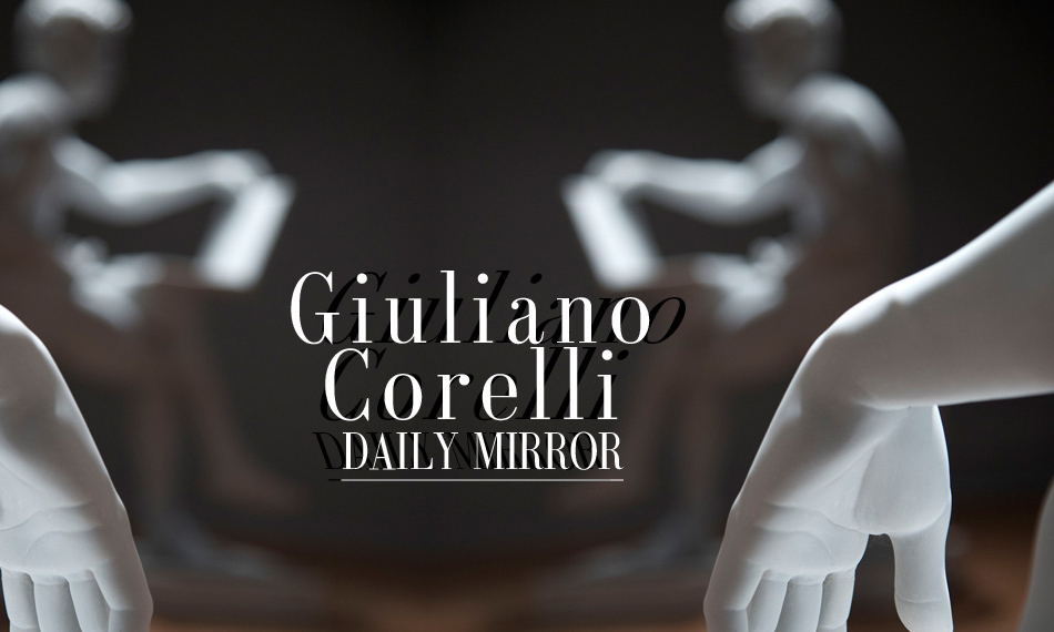Impeccabile e vorticosa la perfezione tecnica delle opere, quasi ipnotiche nel gioco di rimandi specchiati tra scultura e spettatore. Mentre le guardi entri in automatica sintonia con uno o più gesti, senti come il bianco sia un ideale foglio su cui stai scrivendo il tuo nome e le tue predilezioni, capisci che lo spunto canoviano ti porta oltre la metafora, nel gioco figurativo del realismo interiore, tra concetti che si calibrano attorno alle merci, al culto feticistico, ai temi del narcisismo, del possesso, dell’apparire. Opere che hanno una loro tattilità neoclassica, una dimensione estetica che capta i perimetri del reale e le proietta fuori dal tempo, rendendole un implicito archetipo archeologico, una pagina narrativa sul presente condiviso. Significativi, in tal senso, il pezzo sul Made in Italy e l’altro con l’asciugamano a mo’ di bandiera tricolore: doppio richiamo ad una dimensione geografica che in realtà proietta le sculture verso una sociologia globale, verso quel consumismo diffuso che ha reso l’Italia un marchio da imitare. Da qui Corelli elabora una necessaria critica al sistema sociale, alle deformazioni dietro quel termine, “bellezza”, così contaminato da subire una riflessione chirurgica.