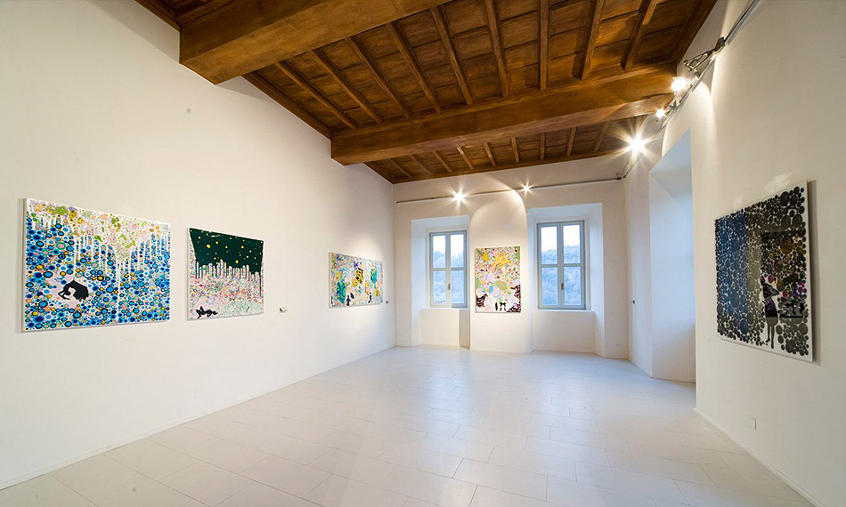 occupano gli spazi con sobrietà invasiva, così come le installazioni si trasformano in edera lisergica che riveste epidermicamente gli ambienti. Lo stesso quadro diventa il dettaglio di una totalità visionaria, come fosse un capitolo narrativo di storie dal respiro ampio.