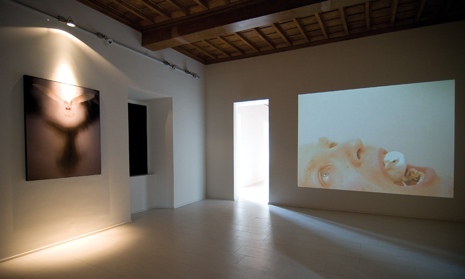 Gligorov? Ieri l’apice manovrante di gesti estremi, azioni violente, momenti esasperati, attimi da non ripetere una volta in più. Ogni sua opera nasceva e nasce dal fermoimmagine sul punto limite dell’azione. Sperimentare il corpo, sperimentare col corpo, sul corpo, attraverso il corpo: sempre per raggiungere l’anima di alcune cose che ridefiniscono il corpo stesso con la sua anima. Gligorov ha messo pesci vivi nella propria bocca, vermi in movimento sul proprio fisico, pelle di pesce o di pollo sopra la propria pelle, un uccello vivo in bocca... E poi si è infilato luci negli orifizi facciali, ha disegnato grafie primitive su tutta l’epidermide, ha cucito e tagliato la propria pelle... Altre volte è uscito da se stesso per proiettare negli altri alcune vibrazioni di un io mediaticamente inquieto. Ha dipinto le pelli altrui di un bianco che si amalgamava al fondale, ha mescolato adolescenza e maturità femminile, disintegrato il ritrattismo con bubboni e rigonfiamenti, usato zampe di pennuti in intrecci geometrici... fino a rendere il corpo una compressione sferica, un pallone scultoreo che chiude la verticalità nel limite rimbalzante di un oggetto anomalo. Assurdo. Normale. Normalissimo, forse. Assurdo, probabilmente. Cosmico, perché no?
